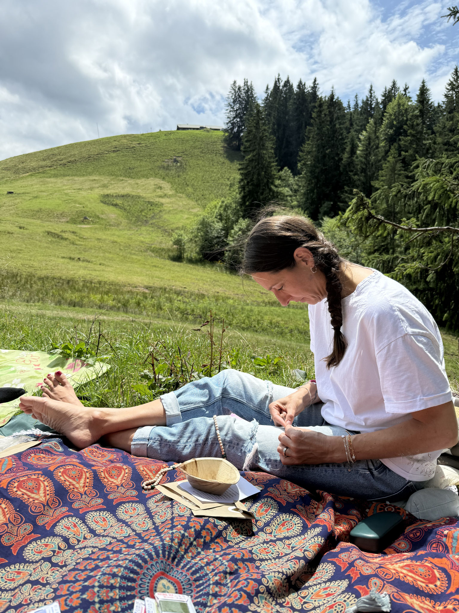 Nachdem ich lange nach der richtigen Mala für mich gesucht hatte, habe ich mir diese dann Anfang 2024 selbst geknüpft. Wichtig war dabei für mich die Verwendung heimischer Materialien wie Zirbenholz und Bergkristall. Ich wollte die Kraft der Alpen mit einfließen lassen. Die Mala und ihre Wirkung faszinieren mich und diese Faszination in Verbindung mit der Magie meiner Wahlheimat Schliersee möchte ich gerne an Dich weitergeben.