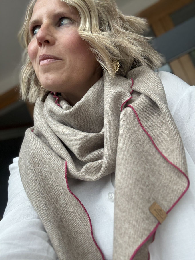 Weicher, kuschelig warmer Merinoloden aus Bayern verarbeitet zu einem Tuch in Dreiecksform, das sich ganz vielseitig kombinieren lässt.